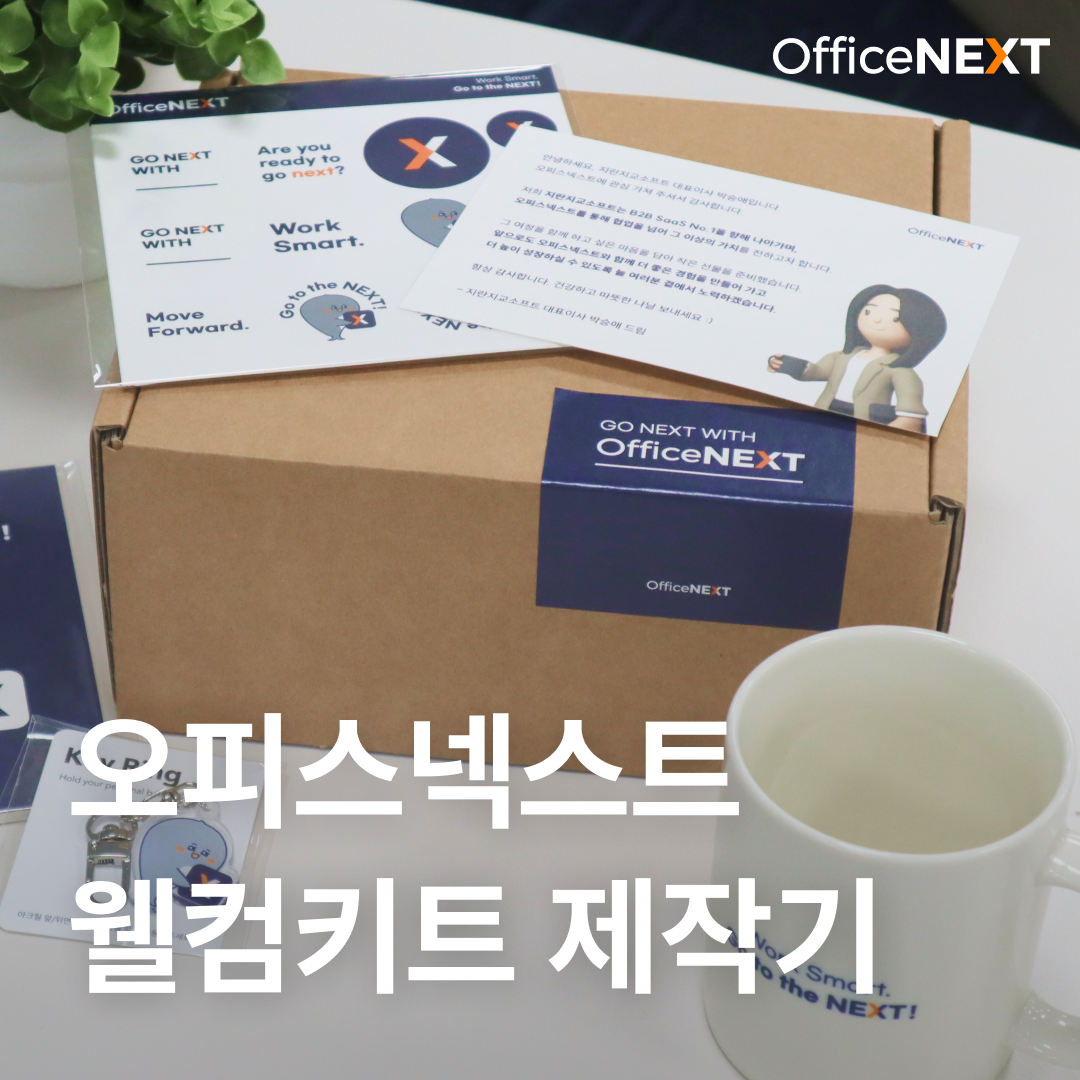 오늘은 오피스넥스트 고객 경험 증진 과정의 일환으로 제작한 '오피스넥스트 웰컴 키트'를 소개하고자 합니다. 😄 오피스넥스트 유료 도입을 앞두고 계신 담당자 분들, 오피스넥스트를 잘 활용해 주시고 적극적으로 의견을 개진해 주시는 담당자 분들께 선물로 보내드릴 예정인데요.